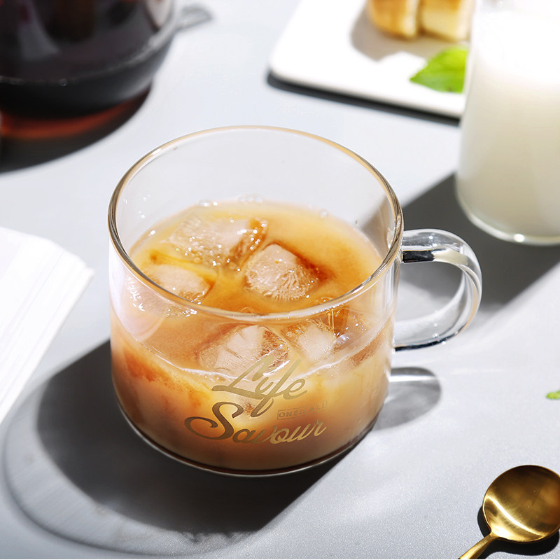 夏季家用燕麦杯加厚玻璃水杯日式个性网红简约加厚耐热牛奶早餐杯