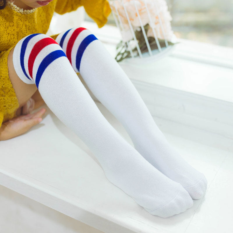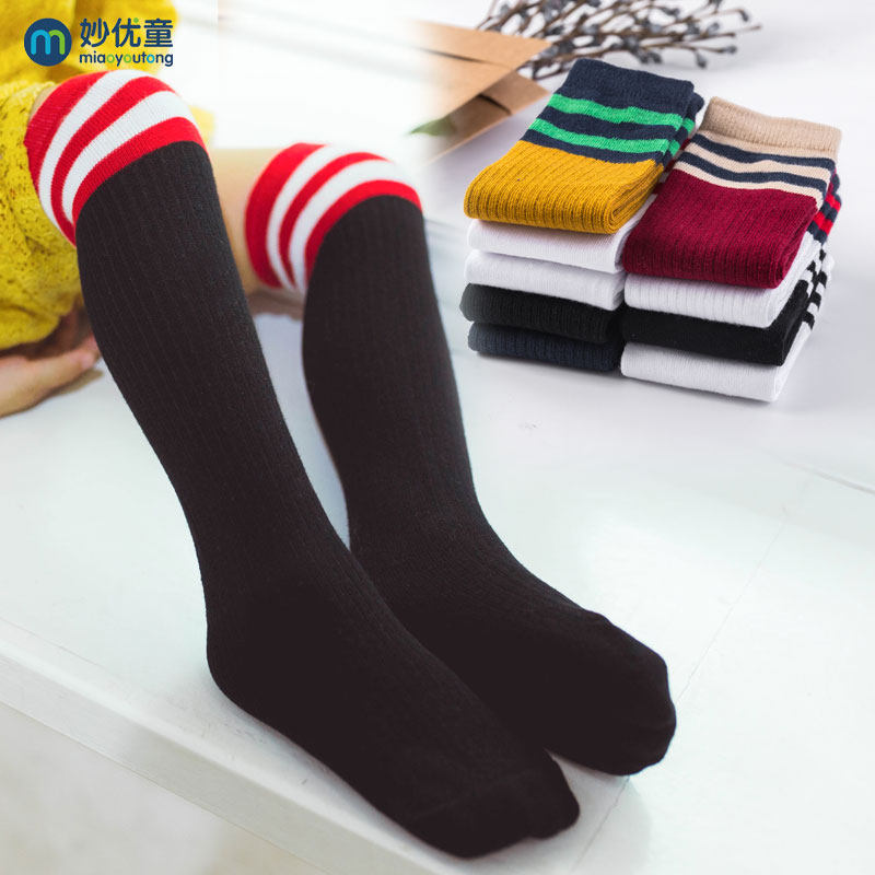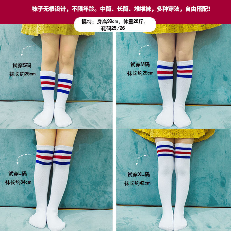 女童中筒袜2019春秋纯棉宝宝过膝长筒袜儿童长袜男童足球堆堆袜子