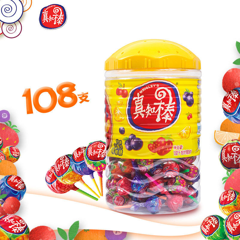 真知棒108支桶装箭牌水果味棒棒糖童年怀旧小零食散装结婚喜糖果
