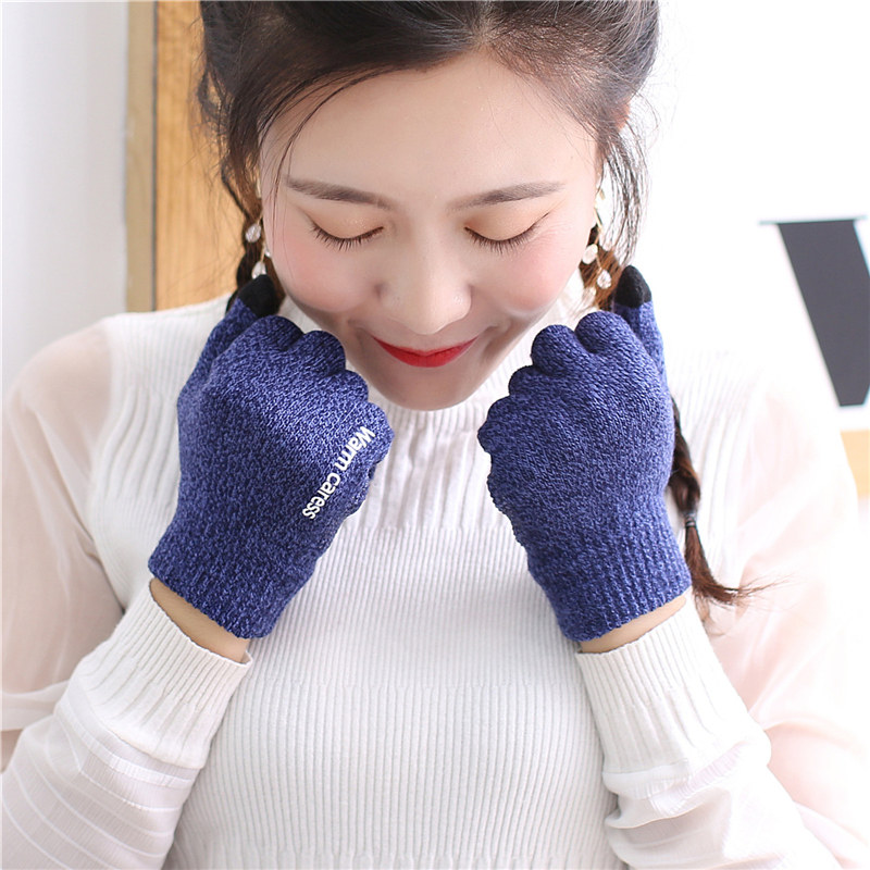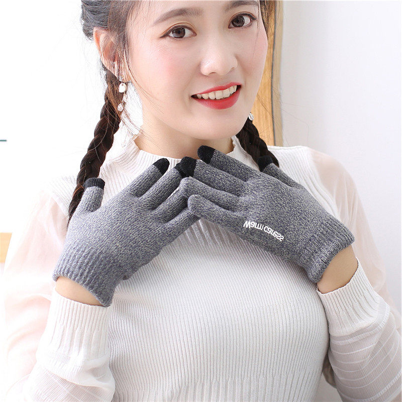 触屏毛线手套男士冬季保暖加厚防滑开车情侣女户外全指针织手套秋