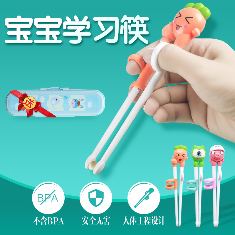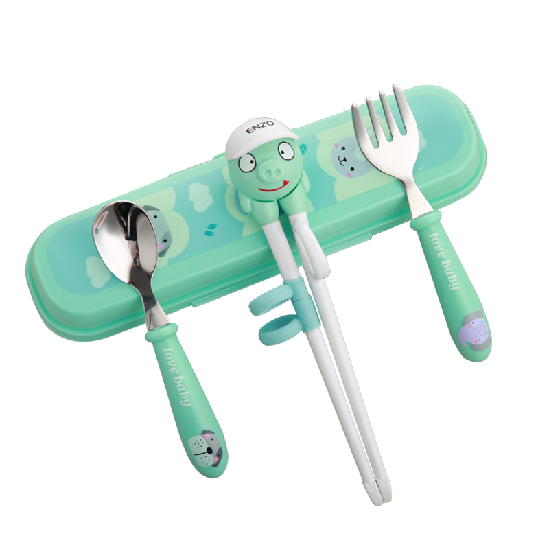 儿童筷子训练筷一段宝宝学习练习筷小孩家用吃饭勺子餐具套装男孩