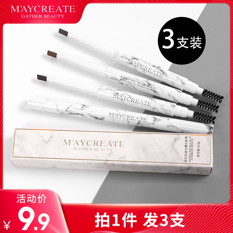 3支装 双头大理石眉笔女防水防汗不脱色自然持久一字眉初学者眉