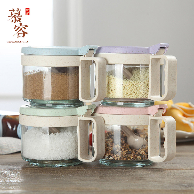 家用北欧调料盒调料瓶套装厨房盐罐味精糖盐收纳盒玻璃佐料盒组合