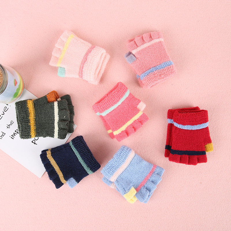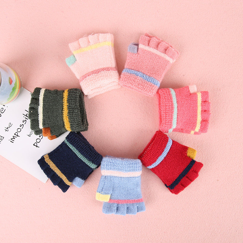 冬季宝宝针织手套0-1-3-5岁男孩半指儿童手套女宝宝小童露指手套