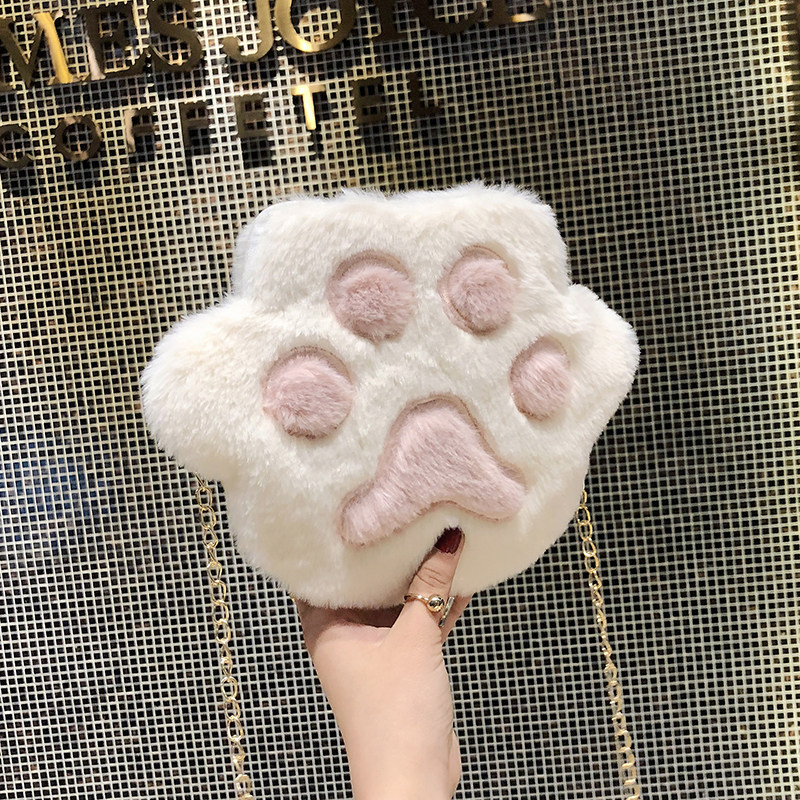ins包包女2018新款韩版链条斜挎包时尚毛绒熊掌小挎包撞色单肩包