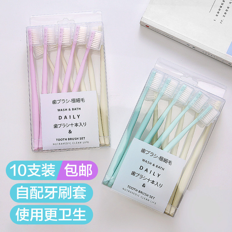 10支家庭装日本小头牙刷待客超细软毛组合装成人儿童家用牙刷套装