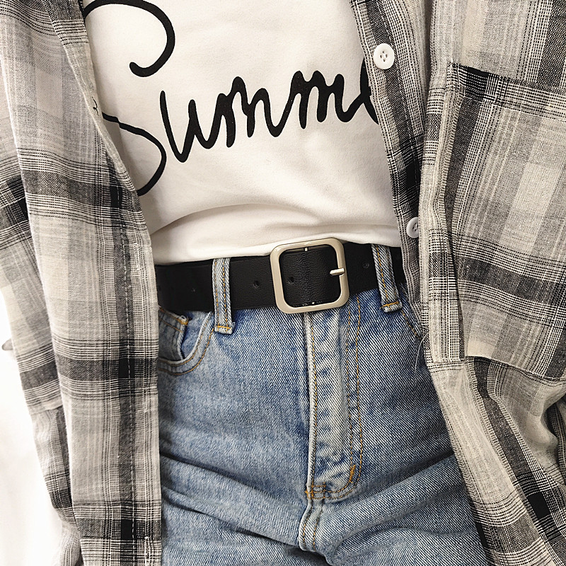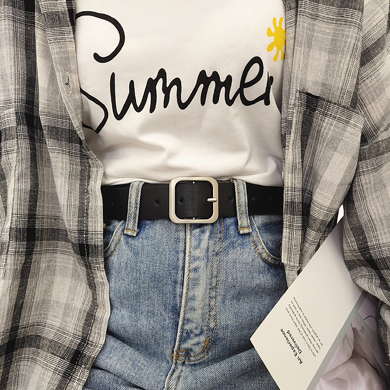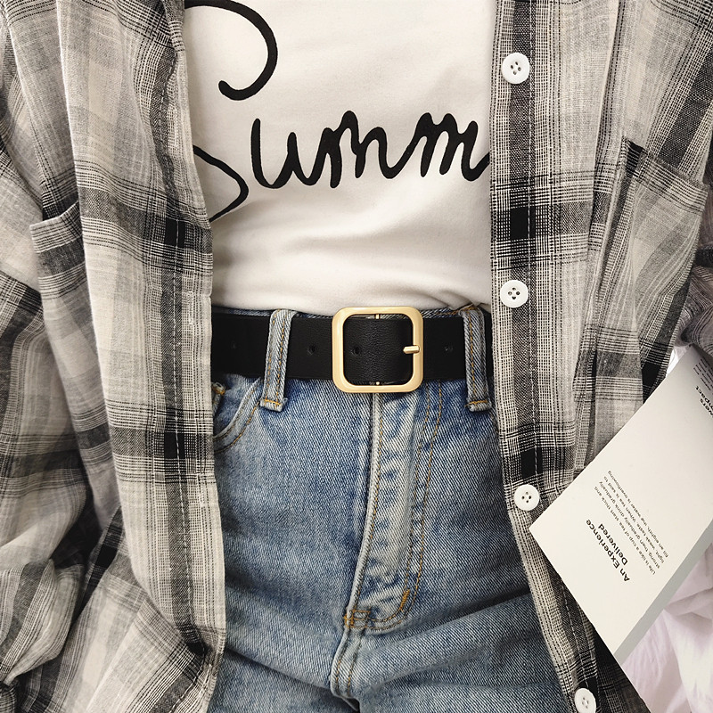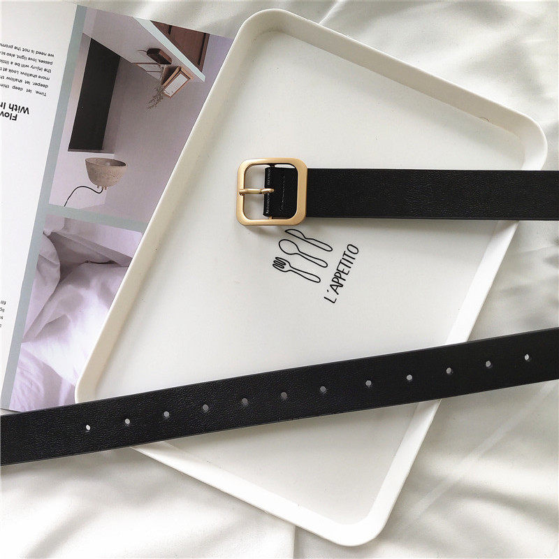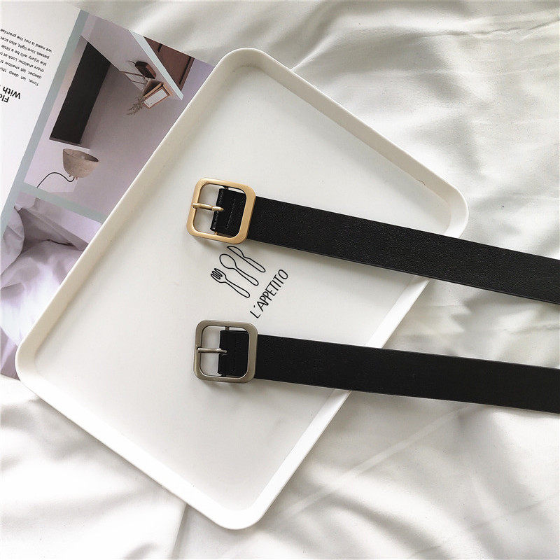 凹造型pu方扣腰带男女通用宽皮带chic学生韩国时尚ins裤带百搭黑