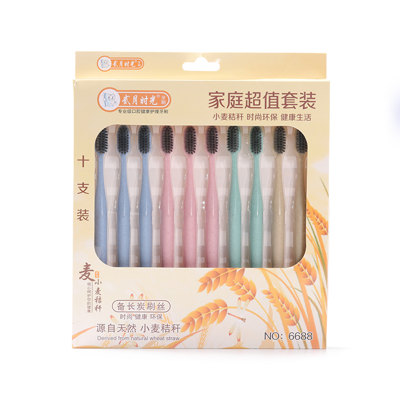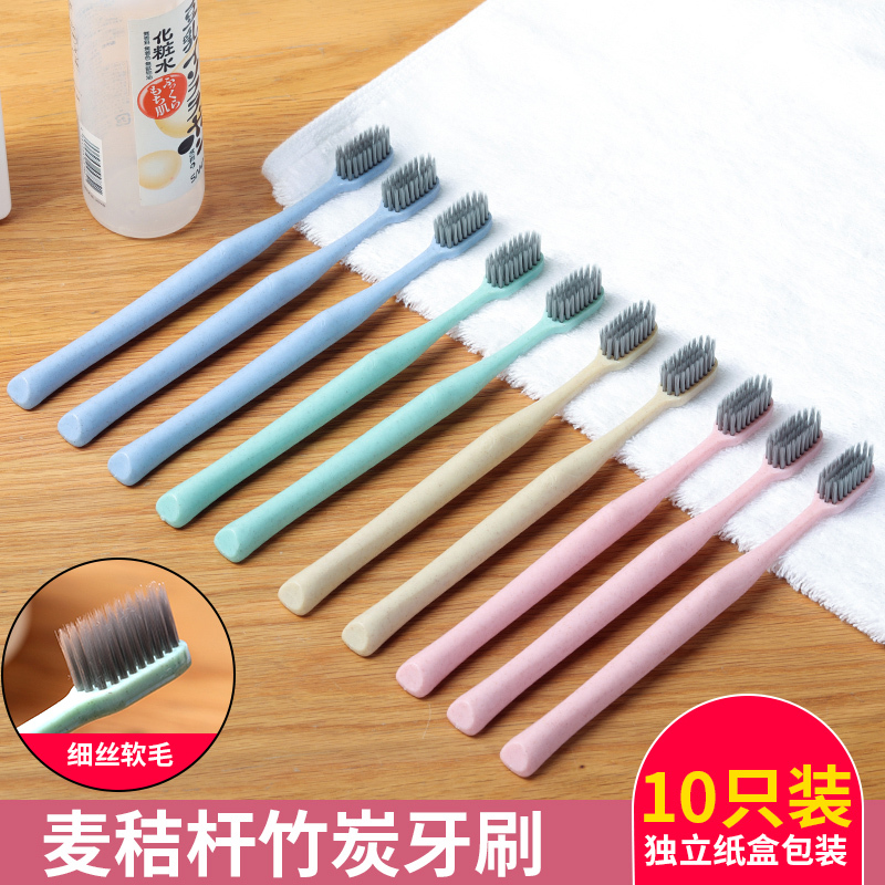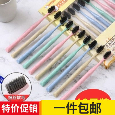 成人软毛牙刷10支装E868竹炭秸秆抑菌儿童情侣家庭家用牙刷套装