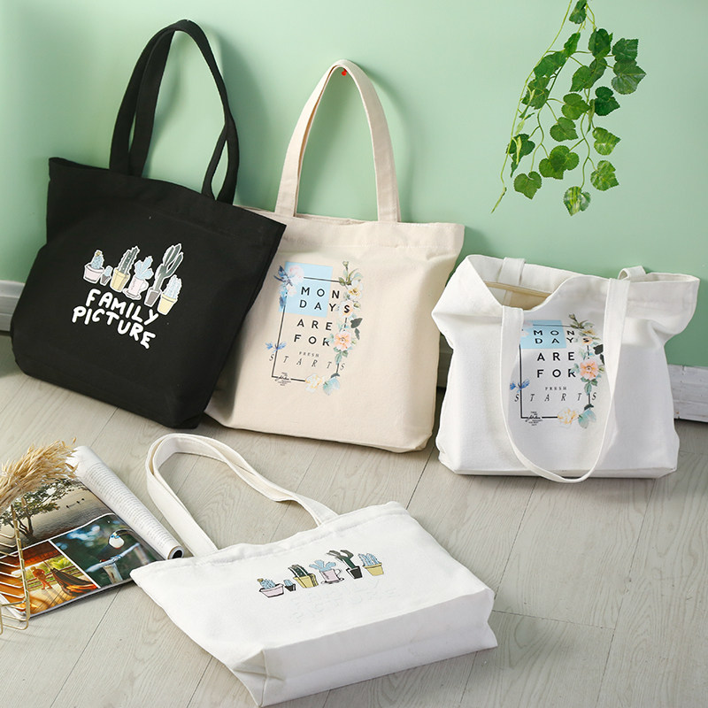 帆布袋女购物袋子帆布包单肩手提学生韩版定制日系ins简约大容量