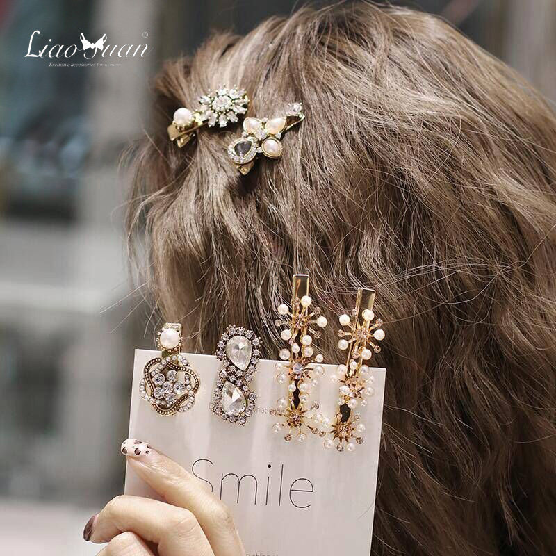 复古花朵发夹女韩国网红发卡头饰少女刘海夹子优雅鸭嘴夹可爱边夹