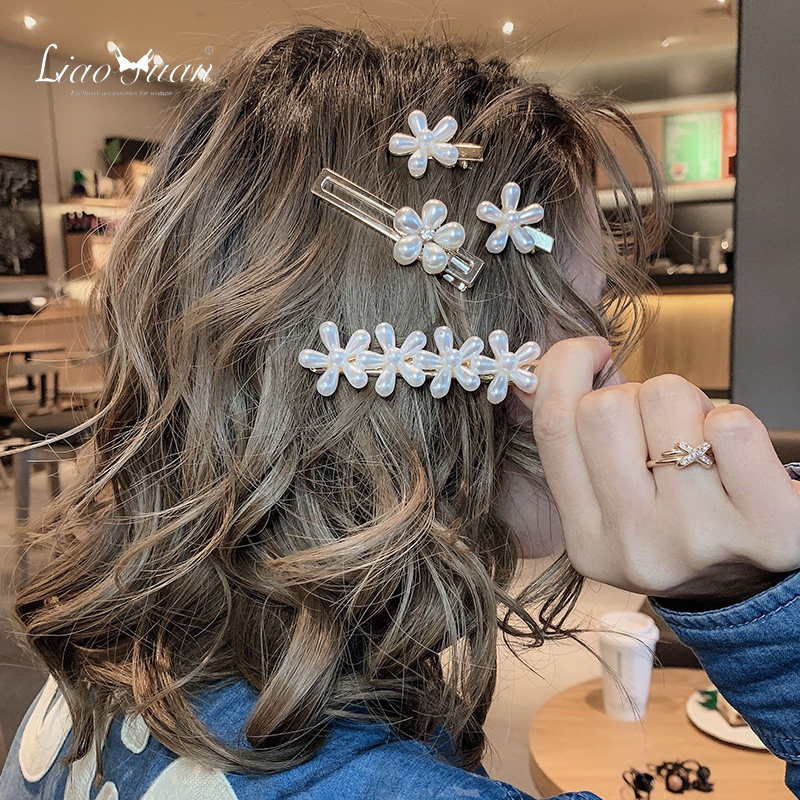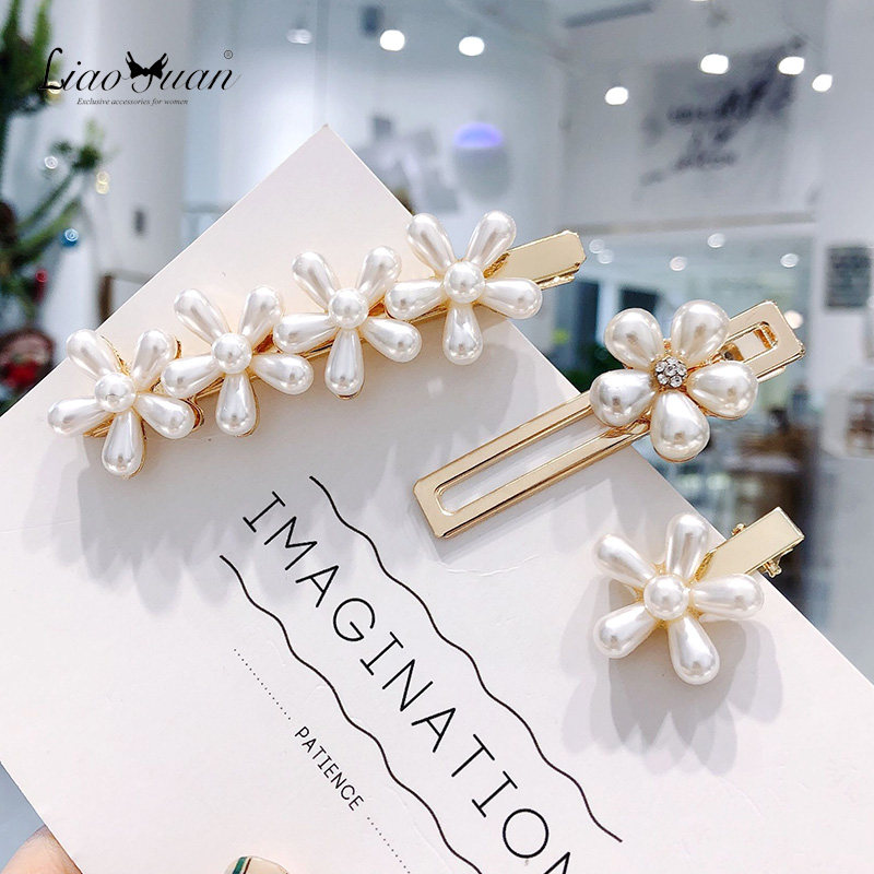 ins仿珍珠发夹女网红发卡头饰少女刘海夹子可爱花朵鸭嘴夹边夹