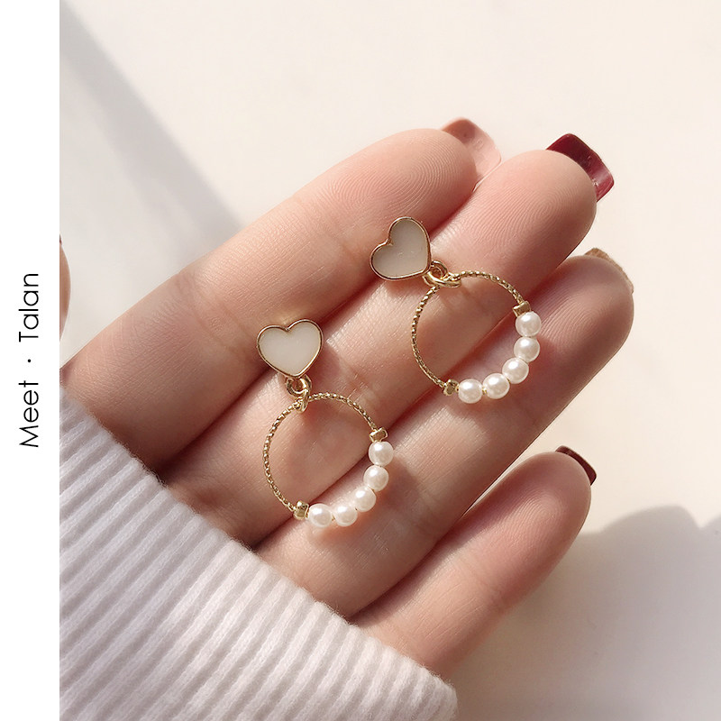 简约显脸瘦的耳饰韩国清新网红甜美气质耳坠爱心仿珍珠耳环女耳钉