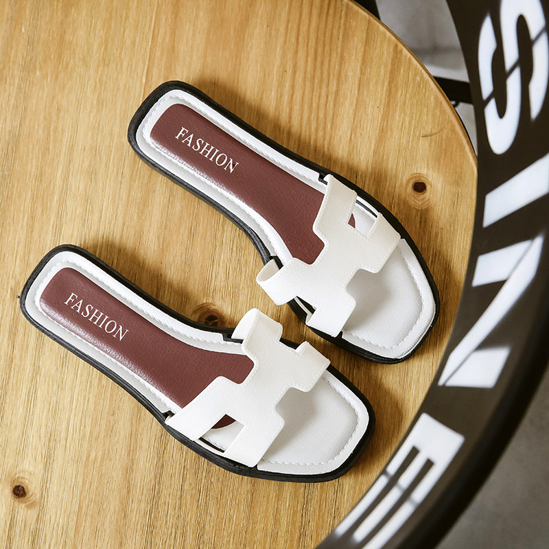 休闲居家百搭一字拖女露趾可湿水平底浴室拖鞋室内外穿女鞋沙滩鞋
