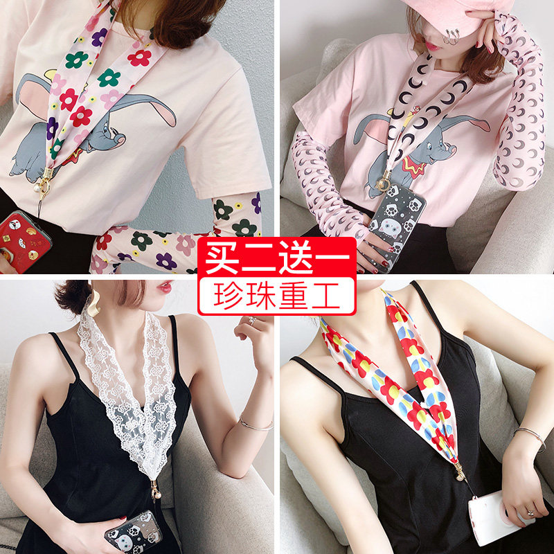 手机挂绳丝巾挂脖绳子苹果华为小米vivo通用oppo宽带吊绳可拆卸长短宽布女款指环扣钥匙防丢手碗缎带绳壳挂饰