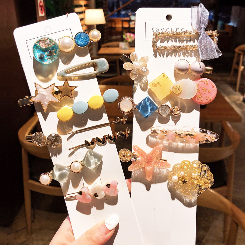 发夹女韩国新款网红珍珠后脑勺头饰边夹少女夹子一字夹刘海夹发卡