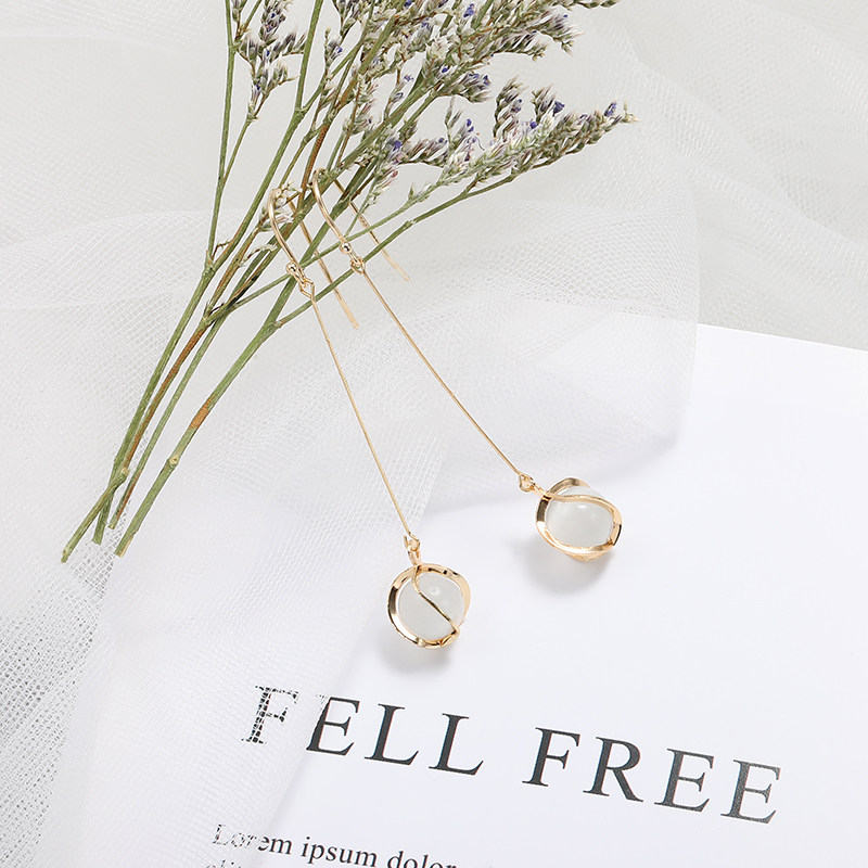 气质显脸瘦猫眼石耳环百搭无耳洞耳夹女长款高级感耳坠耳钉A52-5