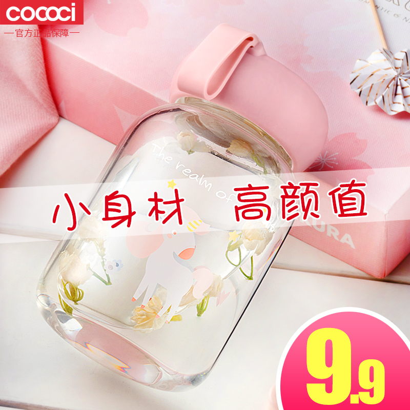 玻璃杯女便携水杯韩国透明可爱学生杯森系简约创意随手杯花茶杯子