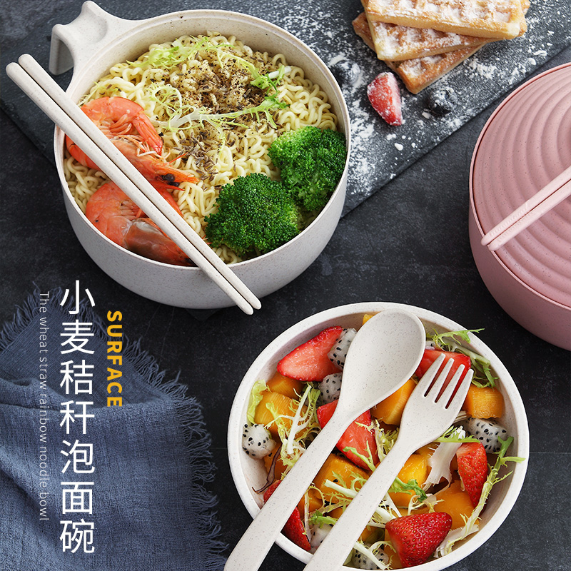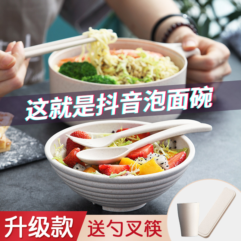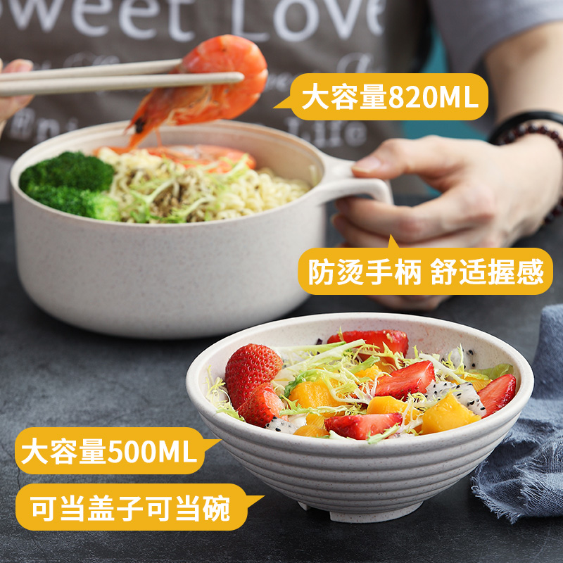 小麦秸秆餐具单个碗筷套装学生饭盒宿舍带盖大碗日式泡面碗神器