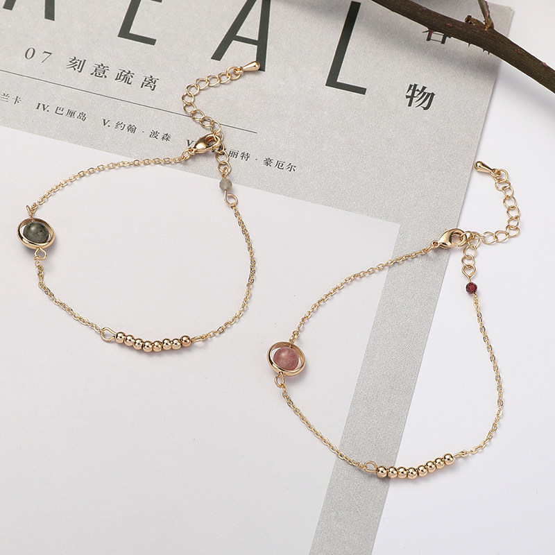 韩国草莓水晶个性情侣手链少女学生简约珍珠网红闺蜜冷淡风手饰品