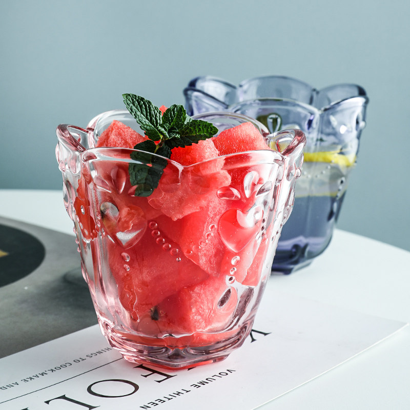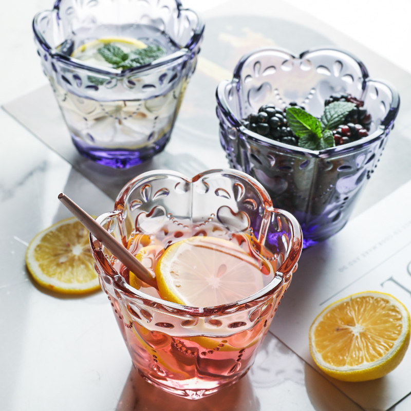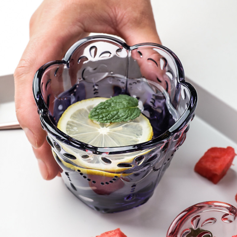 tinyhome日式创意浮雕玻璃杯子家用个性水杯果汁冷饮杯牛奶咖啡杯