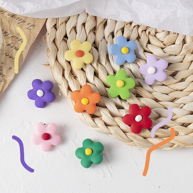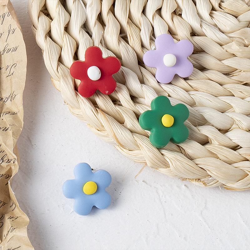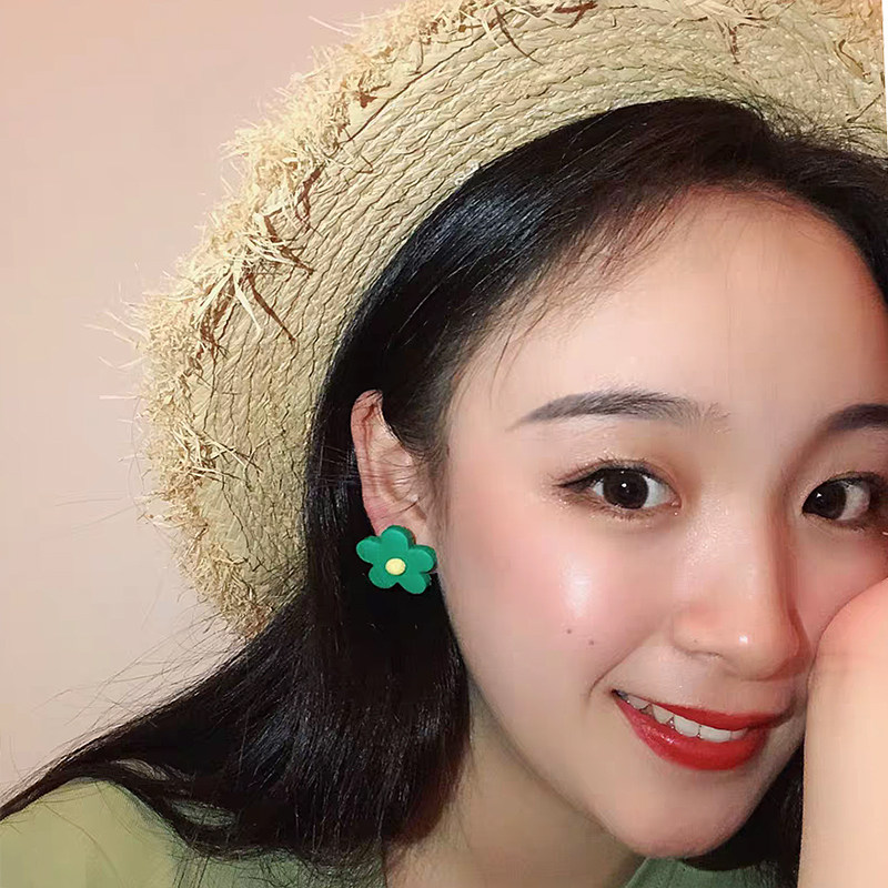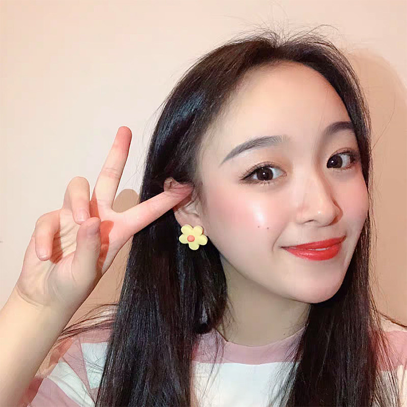 泫雅花朵春天彩色陶土耳环软陶小花耳钉少女可爱百搭无耳洞耳夹