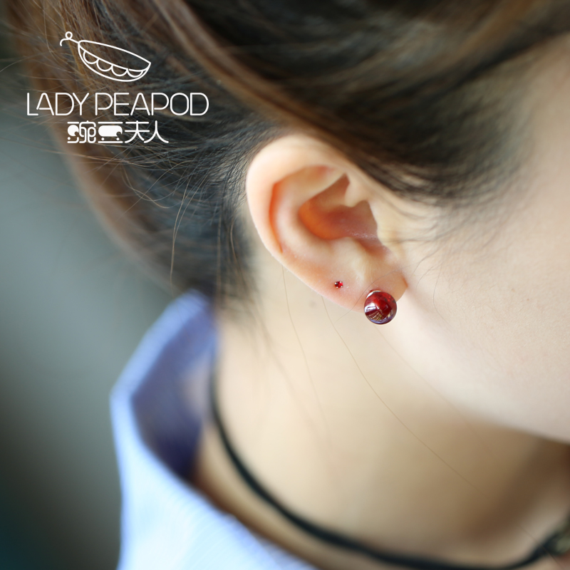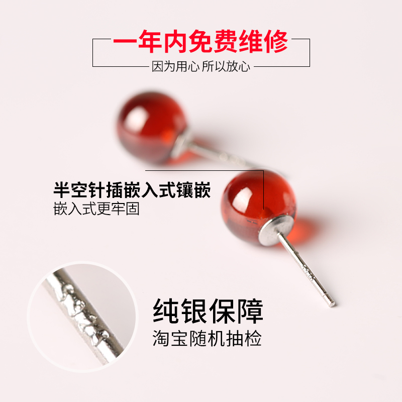 创意耳环925纯银红色耳钉个性石榴石女银韩国气质百搭简约银耳饰