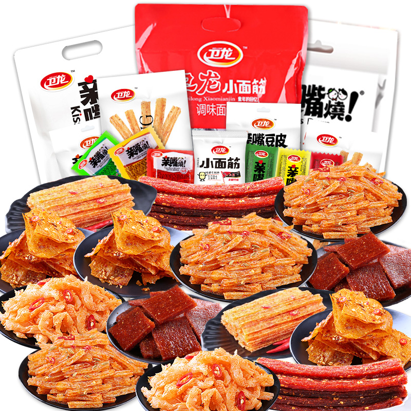 卫龙辣条大礼包 小面筋亲嘴烧魔芋爽麻辣豆腐干制品小吃零食整箱