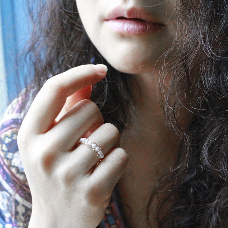 「周而复始」原创设计手工进口14K包金天然宝石叠搭纤细戒指系列1