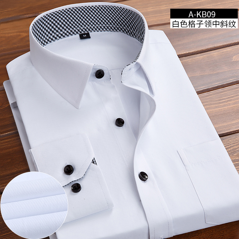春季白衬衫男士长袖韩版修身纯色休闲黑色短袖衬衣寸商务职业衣服