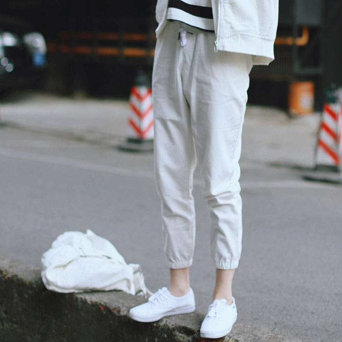 韩国ulzzang春秋简约运动风裤脚收口哈伦九分裤学生束脚裤休闲裤