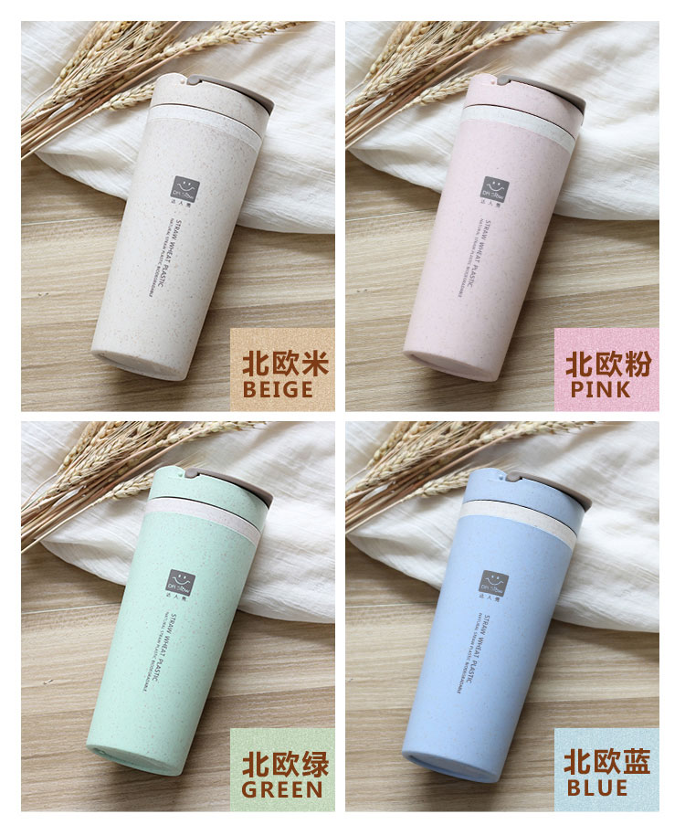 创意小麦秸秆双层水杯带提手男女随手杯韩国学生便携水杯情侣杯子