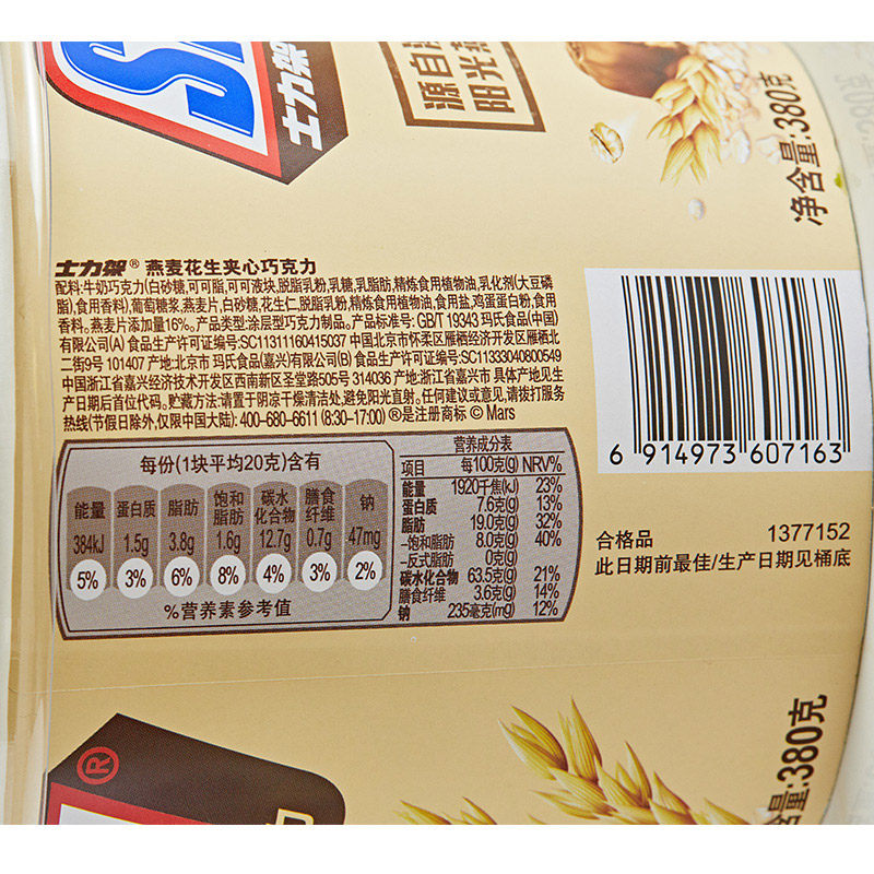 士力架燕麦花生巧克力380g*2桶家庭分享装全家桶零食品包邮