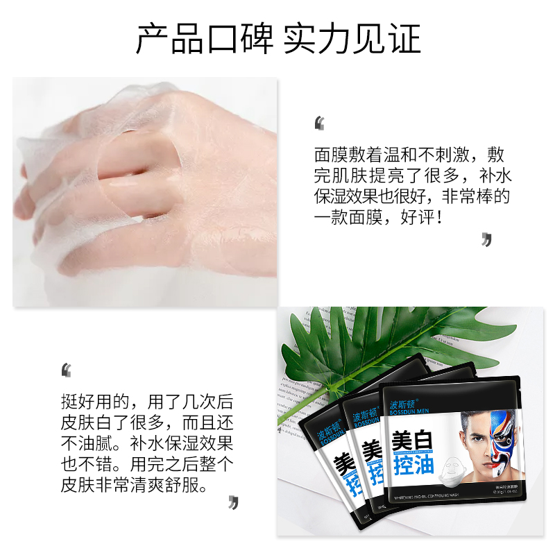 波斯顿男士生面膜美白补水控油祛痘保湿去黑头淡化痘印变增白专用