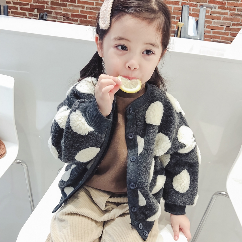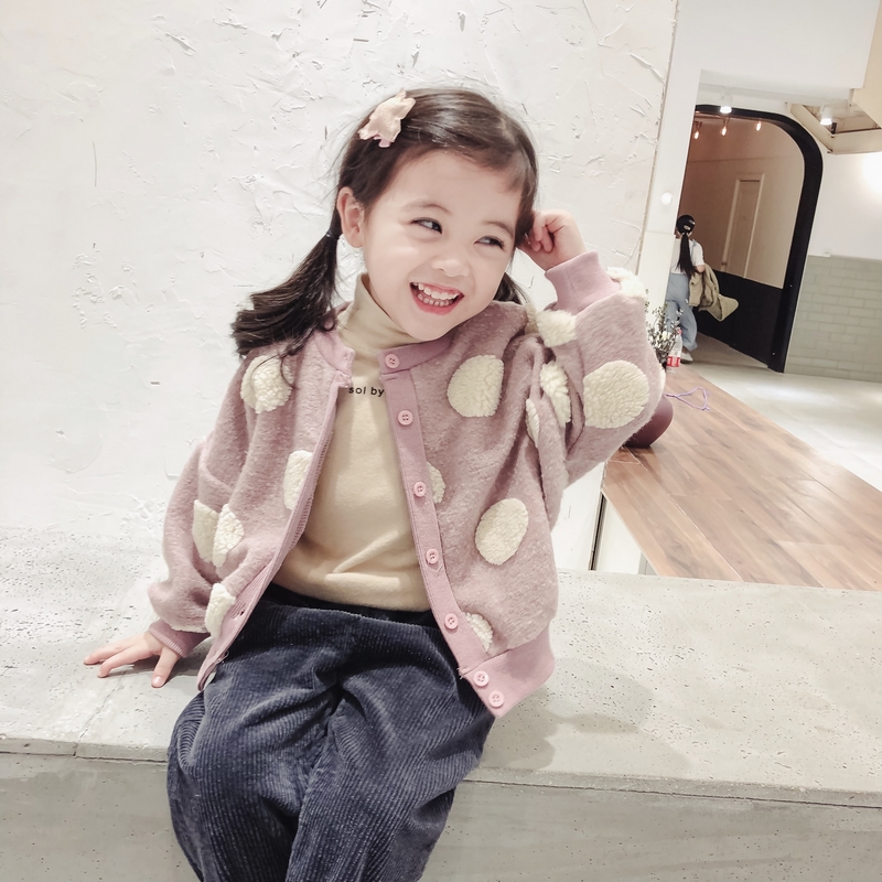 童装女童韩版新款大圆点外套儿童男女夹克宝宝秋冬公主上衣