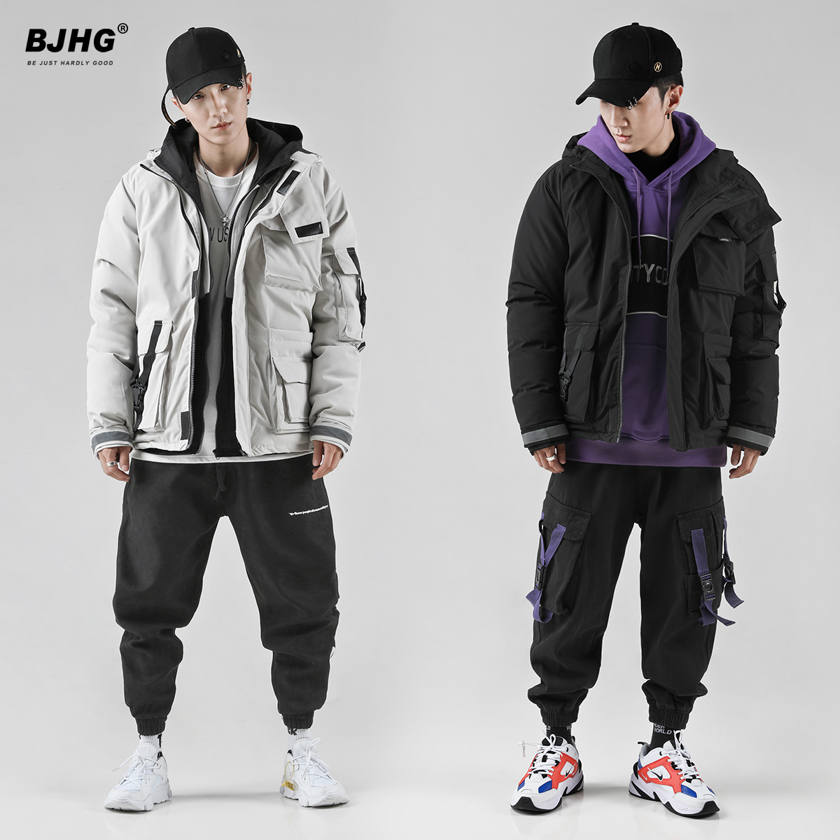 BJHG多口袋工装棉服男潮美式街头宽松纯色加厚OVERSIZE魔术贴棉衣