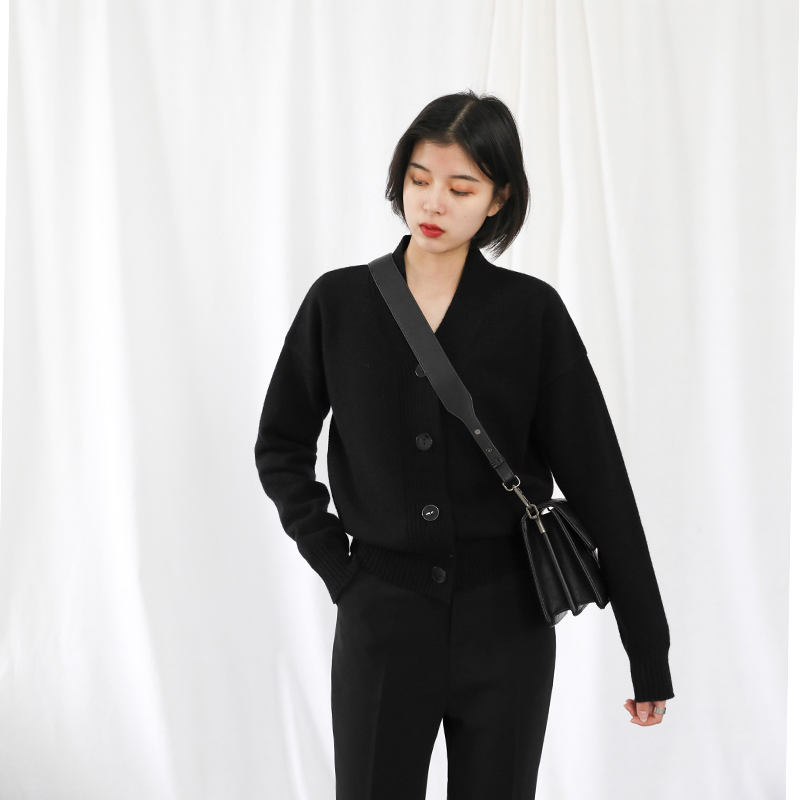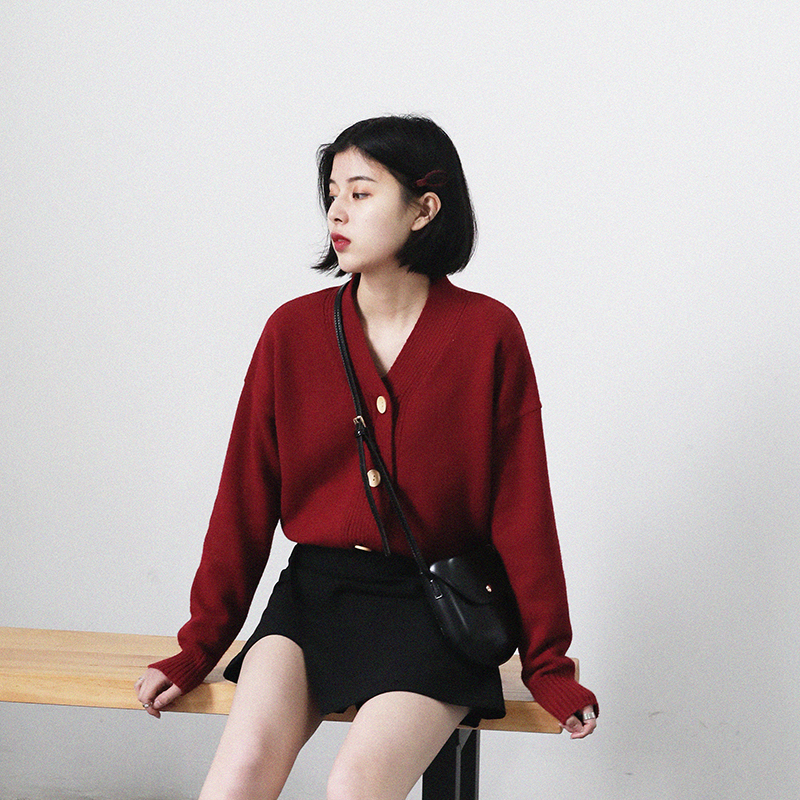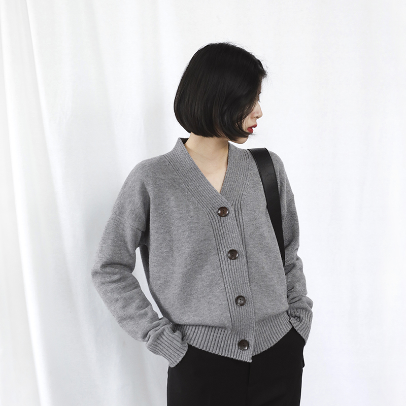 CHICVEN自制 2019春装新款复古V领显瘦针织毛衣开衫百搭短外套 女