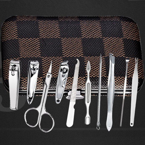 【天天特价】十件套方格豪华修甲指甲刀套装 指甲钳指甲剪礼品
