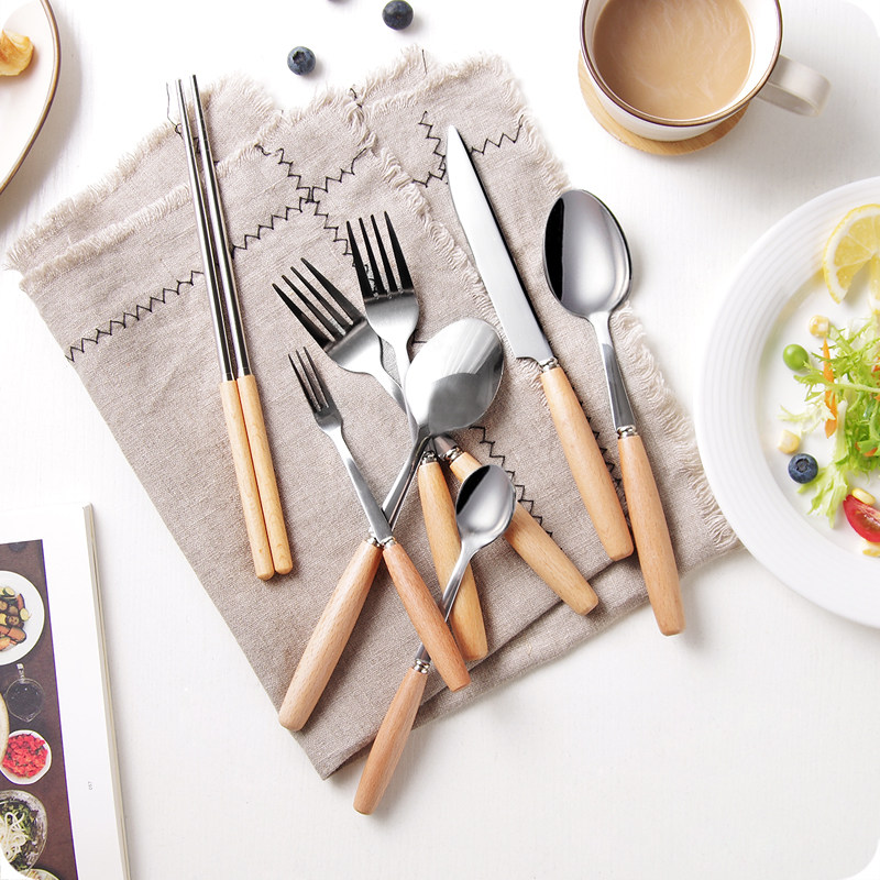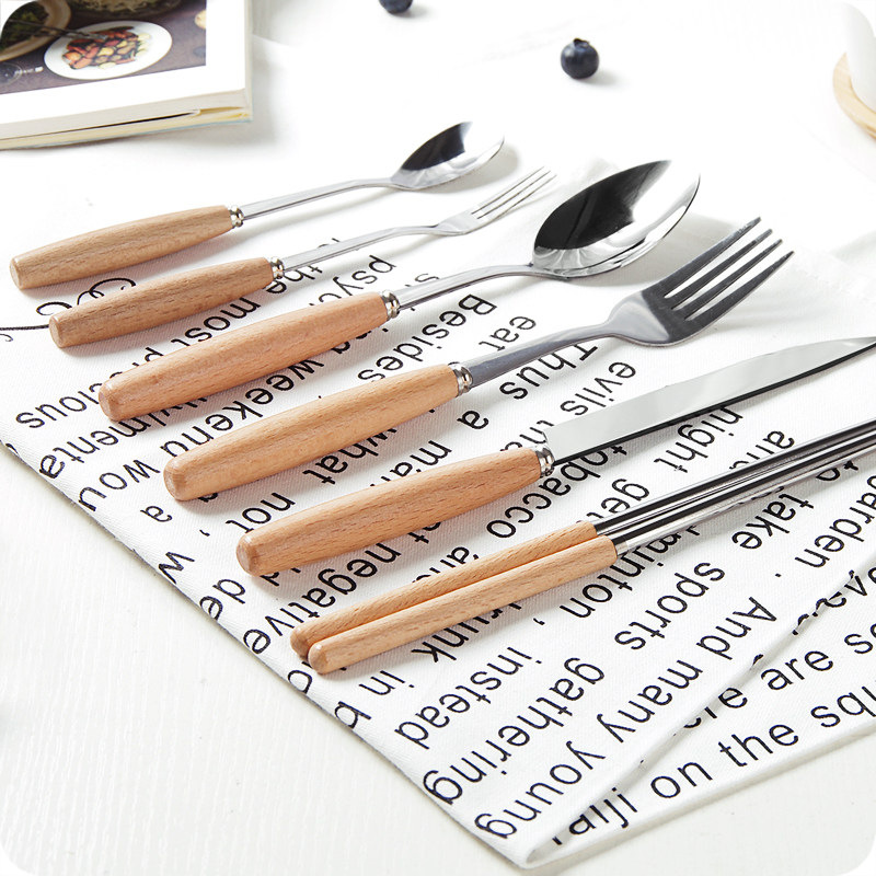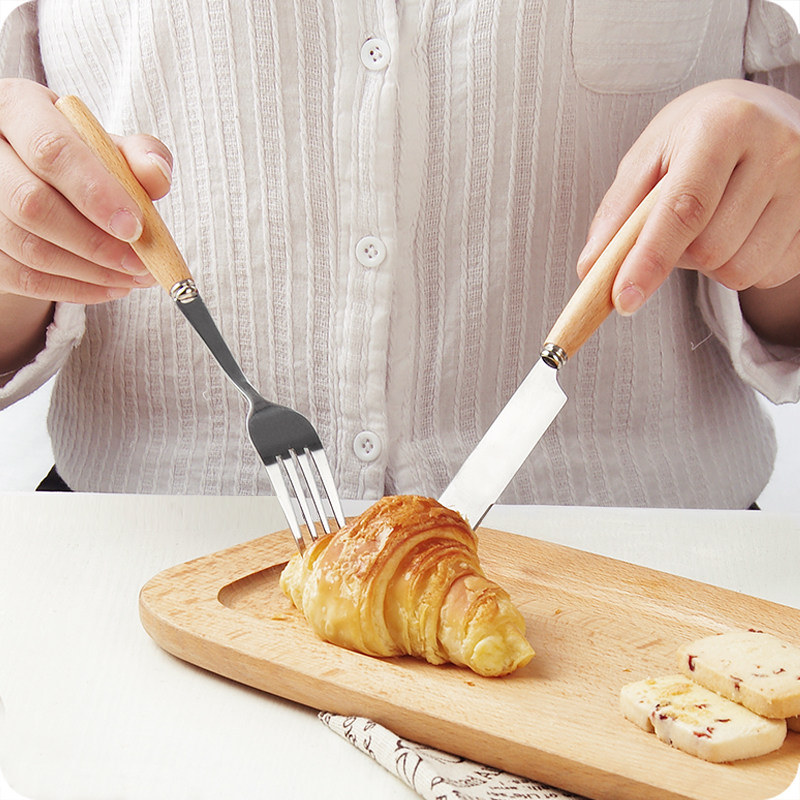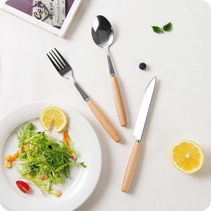 创意木质手柄不锈钢刀叉水果叉西餐牛排刀叉勺餐具木柄汤勺筷子